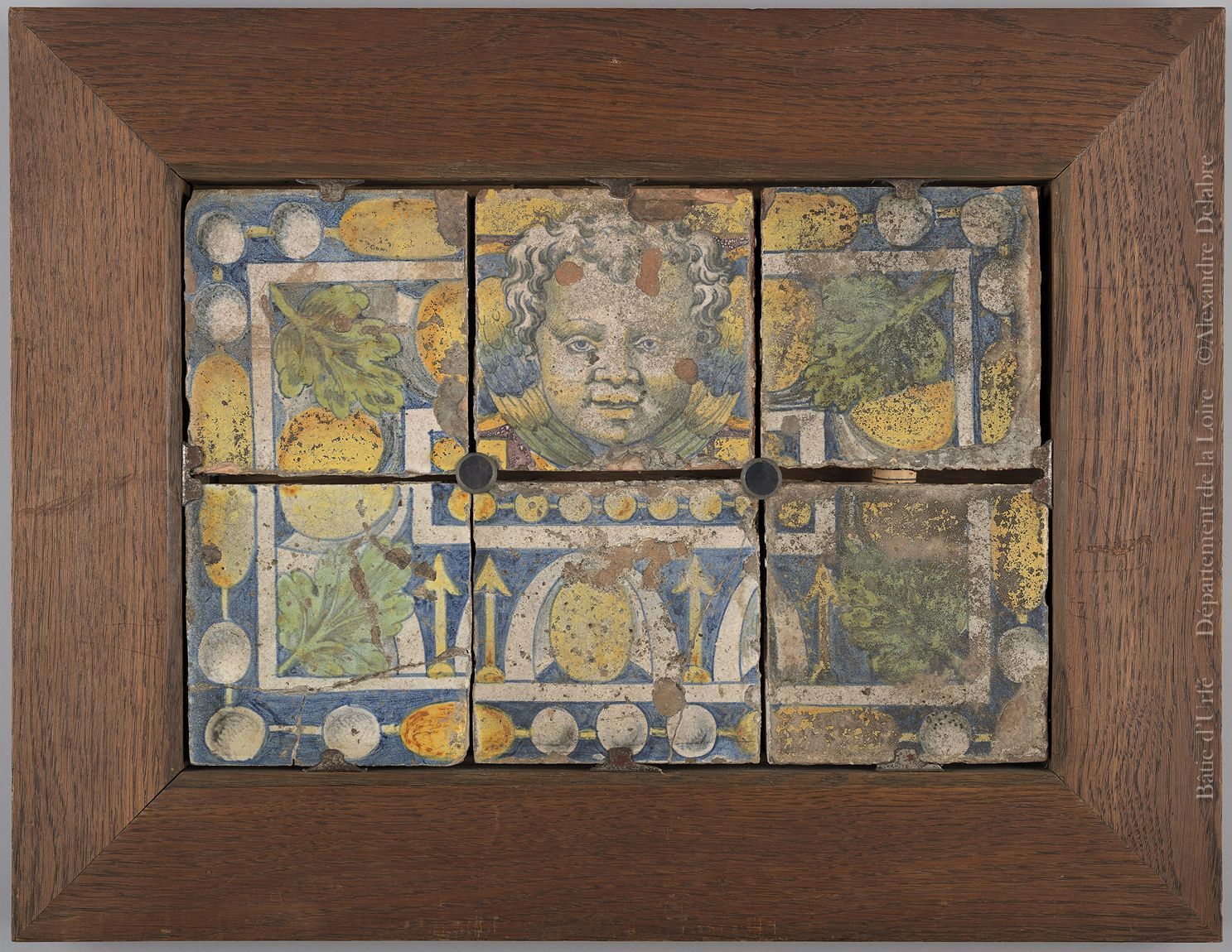Composition de six carreaux provenant du sol de la chapelle ; © ARCHIVES DEPARTEMENTALES DE LA LOIRE ; ©  ARCHIVES DEPARTEMENTALES DE LA L ; ©  Musée Château de la Bâtie d'Urfé